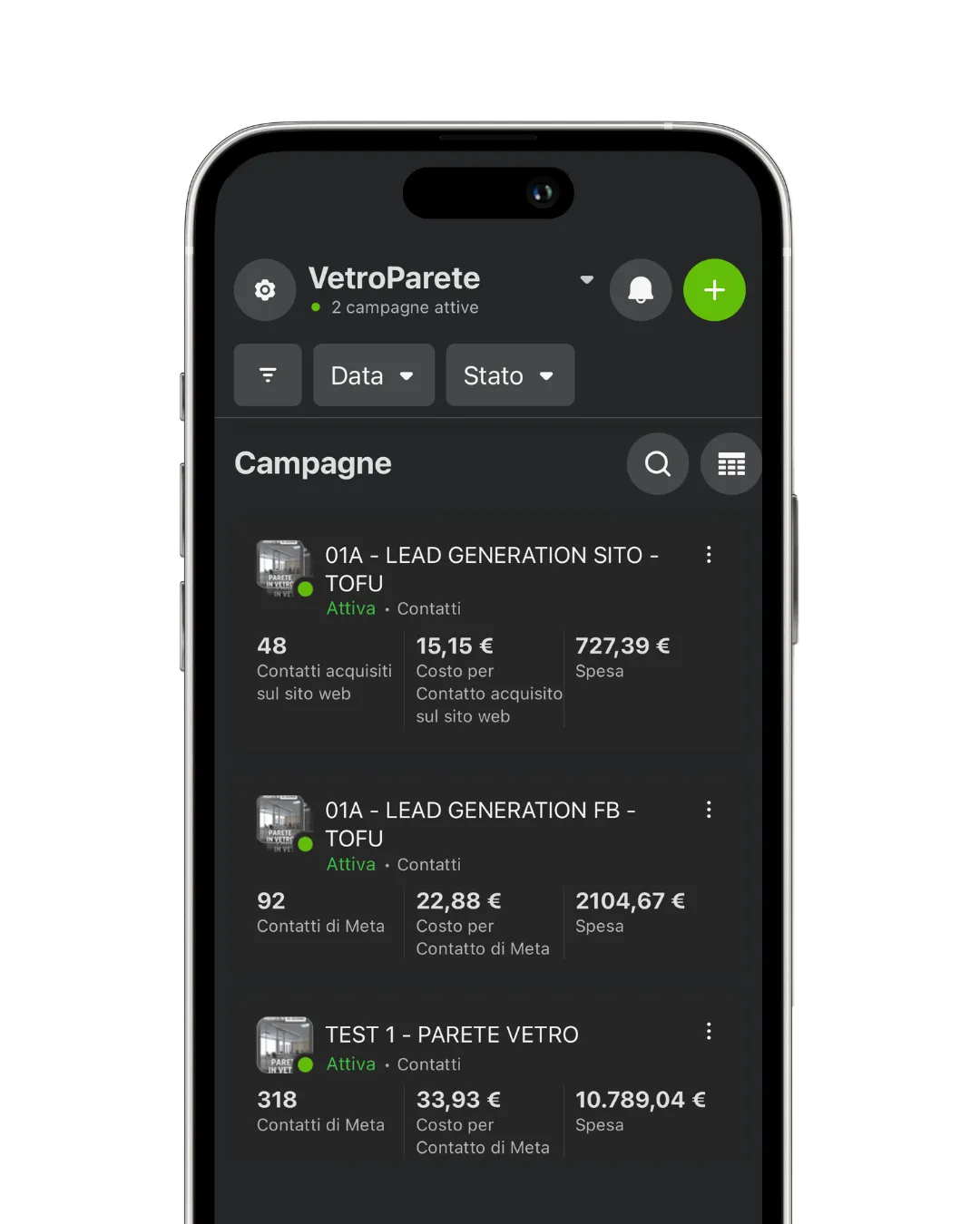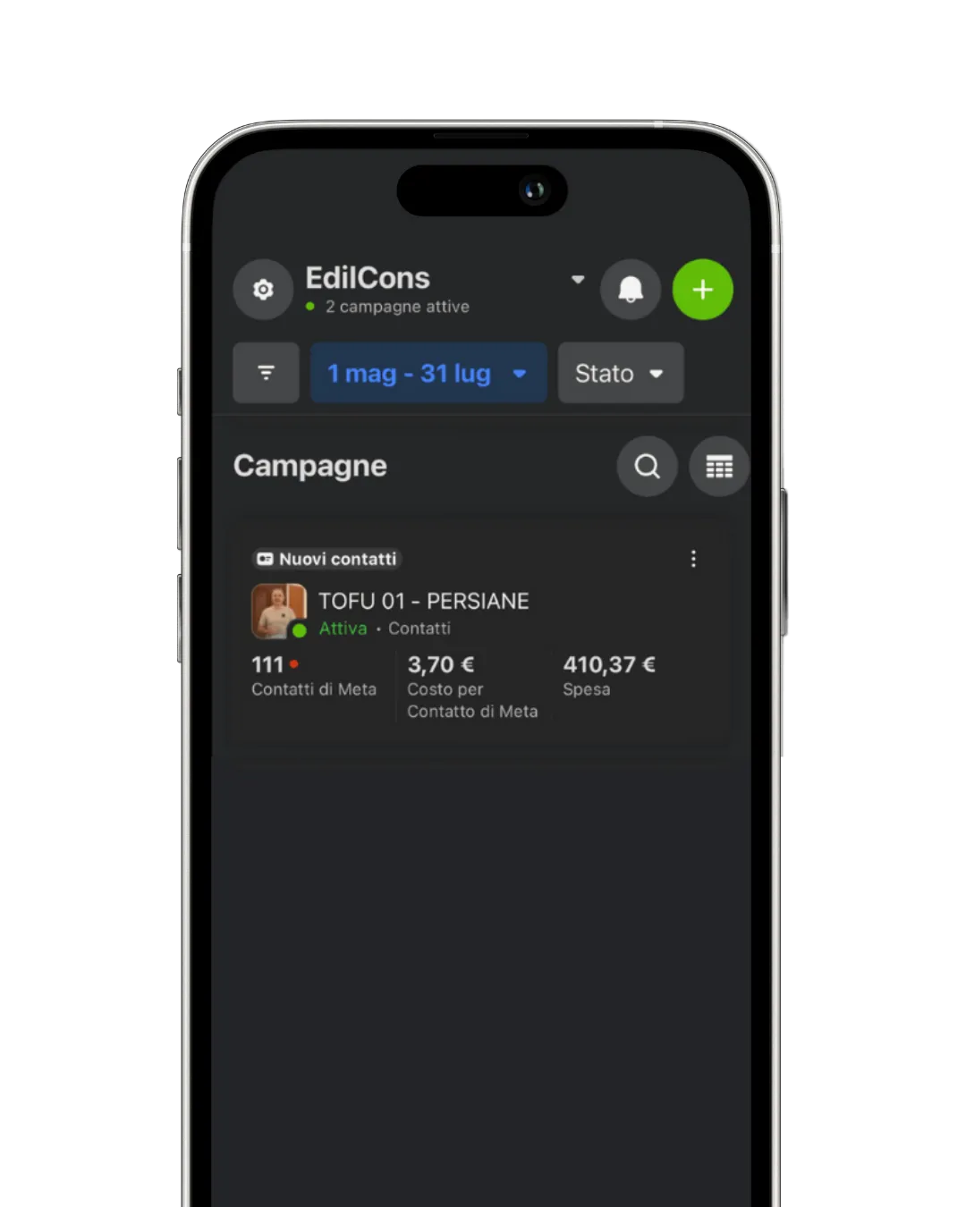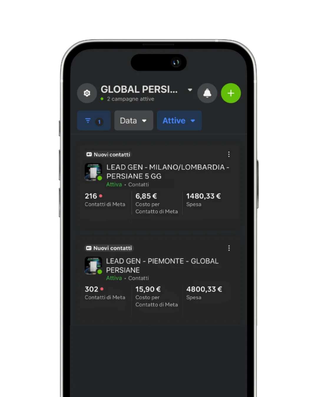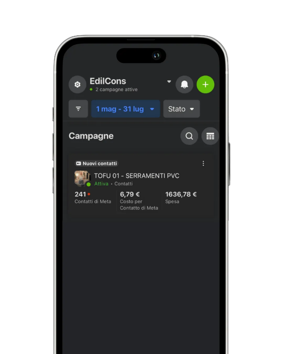 Non solo facciamo partire gli annunci: li gestiamo, monitoriamo e ottimizziamo ogni giorno. Campagne su Meta per intercettare chi non ti conosce e su Google per chi ti cerca già → due canali che lavorano insieme, sempre sotto controllo.